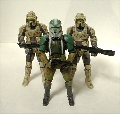 画像は右からバイカー・スカウト(VOTC)、エリート・コープス・クローン・トルーパー(SAGA2ただしプチカスタム)、キャッシーク・トルーパー。