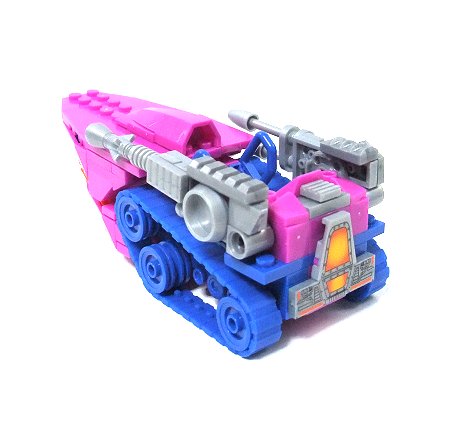 オリジナルではキャタピラは造形だけで車体の下の車輪で動いていたのだが、メガコン版はちゃんとキャタピラがキャタピラとして機能している。