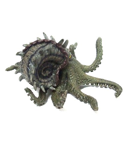 殻があるのでタコやイカというよりも、むしろアンモナイトに近いデザインか。