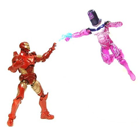 ジャスティン・ハマーに雇われて犯罪活動に手を染め始めた当初は、自身が開発した手首に装着する形のレーザー光線発射装置で武装していたが、後にモグリの科学者ジョナス・ハローの協力を得て自分の体に装置を埋め込む方法を考案。