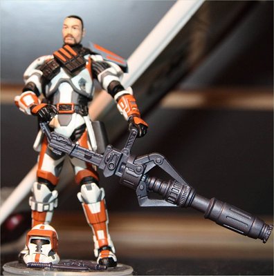 さて、コレはよくわからないのだが、ヘルメットの形状からしてEPⅡからEPⅢにかけてN過渡期のクローン・トルーパーの重火器兵バージョンだろうか。アーマーの色から察するにコマンダー・コーディ指揮下の第212突撃大隊所属か。