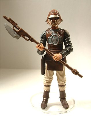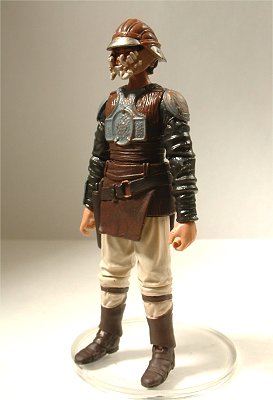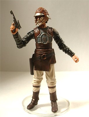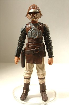 映画EPⅥ“ジェダイの帰還”において、ジャバ・ザ・ハットからハン・ソロを救出後、砂嵐の中をミレニアム・ファルコン号に乗り込むまでのシーンに登場したランドをフィギュア化したもの。