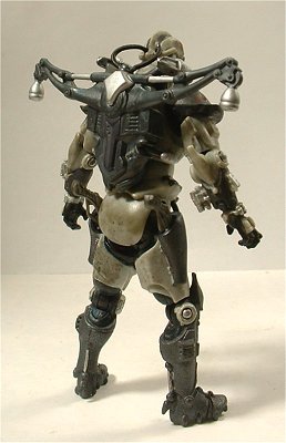 背中のジェッドパックはこれまたベーシック・フィギュアから流用し、後頭部に穴を開けてジェットパックから伸びたチューブを挿しこんで固定。