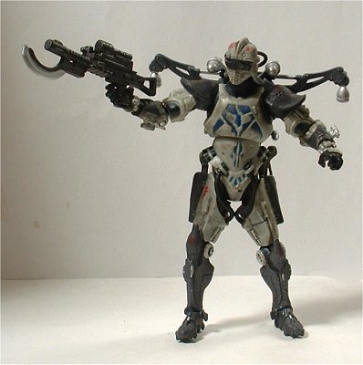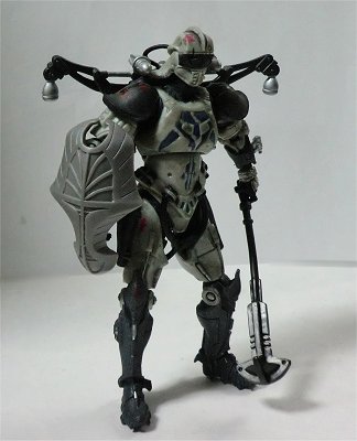 素体は可動部の多いデラックス・フィギュア版を使用し、薄めたフラット・ブラックでウェザリングを施し、ベーシック・フィギュアを参考にして所々にシルバーでアクセントを入れてみた。