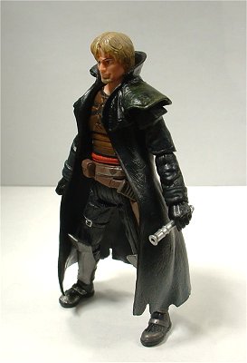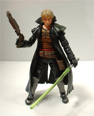 アクセサリーとして愛用のライトセーバー(起動時と柄のみの2種)とローク・チョップ・スペシャルと呼ばれるショットガンに似た形状のブラスターが付属。ちなみにコートの胴部は別パーツなので脱がすことができる。コミックでは腕にタトゥーがあることになっている。