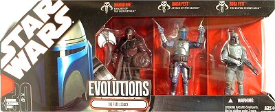 伝説のマンダロリアンの戦士と、その血を引くジャンゴ、ジャンゴの純正クローンであるボバの3体セット。