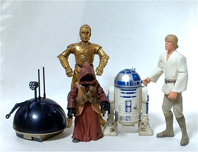 画像は、R2-D2、C-3PO、ルークと。