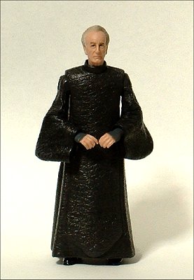 さて、フィギュアのデキは個人的に何かと不満たらたらのブルーカードの中で、意外にも上々の部類。パルパティーン役のイアン・マクダミードの風貌を忠実に再現している。また、左右の手の指を一本一本組ませることのできる芸の細かさが、何気に素晴らしい。