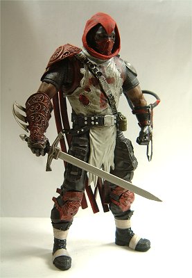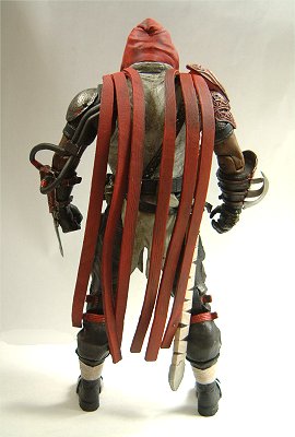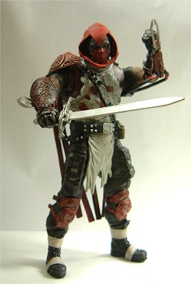 頭部はフードで覆われ、紅いアンダーウェア及び赤いケープをまとい、胴と肩と腕はプロテクターによって護られている。
