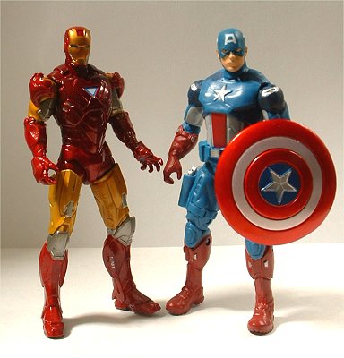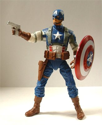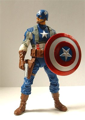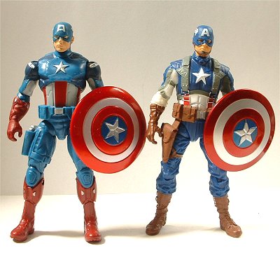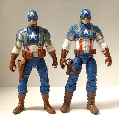 キャプテン・アメリカのムービー版フィギュア(右)と。