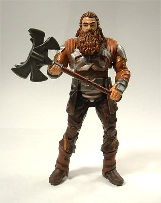 映画では人間が演じているため、巨漢というよりもズングリムックリで、ロード・オブ・ザ・リングのドワーフのような外観。