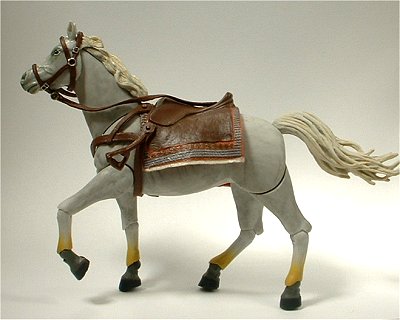 手綱(たづな)と鐙(あぶみ)と鞍(くら)は軟素材なので、インディのフィギュアに自然にフィットするようにできている。