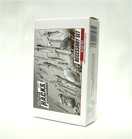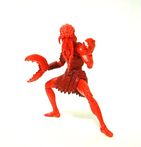 クラスタシアンのミニ・キットには、形状の異なる頭部2種、左右大きさの異なる手のハサミ、三叉の槍、メーカーのロゴ入りスタンドが梱入されている。