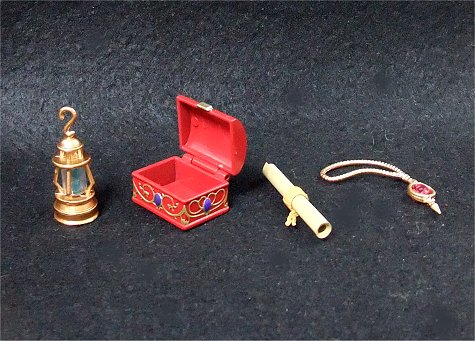 “空中散歩へセット”には、魔女のとんがり帽子、箒(ほうき)、燐光石のランタン、宝箱(ジュエリーボックス)、世界地図の巻物(スクロール)、ペンダントの護符(アミュレット)が付属。